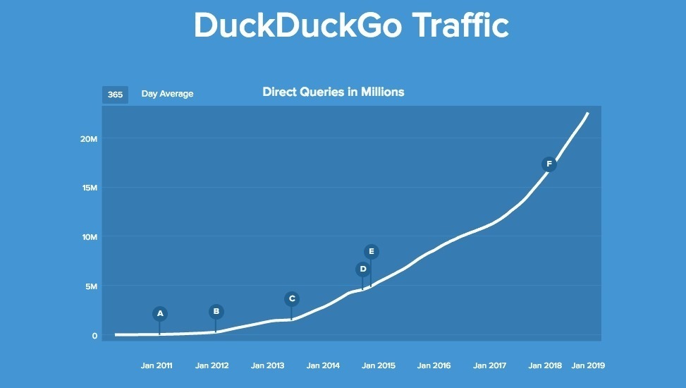Avvenimenti che hanno reso le persone più consapevoli di come i loro dati vengono coltivati e sfruttati dalle grandi aziende tecnologiche e che potrebbero aver convinto una parte di utenza a rivolgersi al motore di ricerca dell’anatra, che dovrebbe garantire ai suoi utenti la massima privacy per le loro ricerche online.