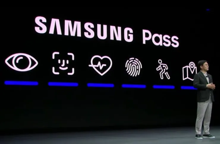 Partendo da sinistra si tratta della seconda icona che rappresenta un volto stilizzato e poi anche la quarta icona che mostra le impronte digitali: all’occhio di un utente Apple si tratta delle icone per Face ID e Touch ID. Solo che nella presentazione dovrebbero fare riferimento al riconoscimento del volto e al lettore di impronte di Samsung Pass, funzioni che in realtà sui dispositivi Samsung sono contraddistinti da icone completamente diverse.