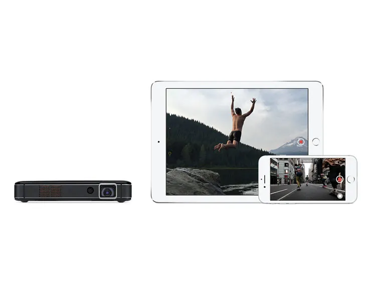 Il Proiettore HD Pro M220 di Miroir (459,20 euro) integra direttamente l’ingresso USB-C per il segnale video e la ricarica (in altre parole non richiede un adattatore HDMI quando usato con MacBook Pro). Anche questo offre batteria integrata agli ioni di litio con la quale è possibile offrire circa due ore di proiezione, due altoparlanti integrati da 2 watt, jack per uscita audio (3,5 mm) e porta USB per ricaricare l’iPhone mentre si fa una presentazione.