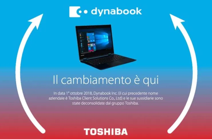 La divisione PC di Toshiba in Europa e USA cambia nome e diventa Dynabook. Dopo l’acquisizione lo scorso anno dell’80,1% del business in questione da parte di Sharp (a sua volta controllata da Foxconn) per una grave crisi aziendale, la divisione Toshiba Client Solutions aveva modificato il brand in Dynabook, riferimento al primo portatile dell’azienda giapponese (il modello Dynabook J-3100 SS001) prodotto nel 1989.