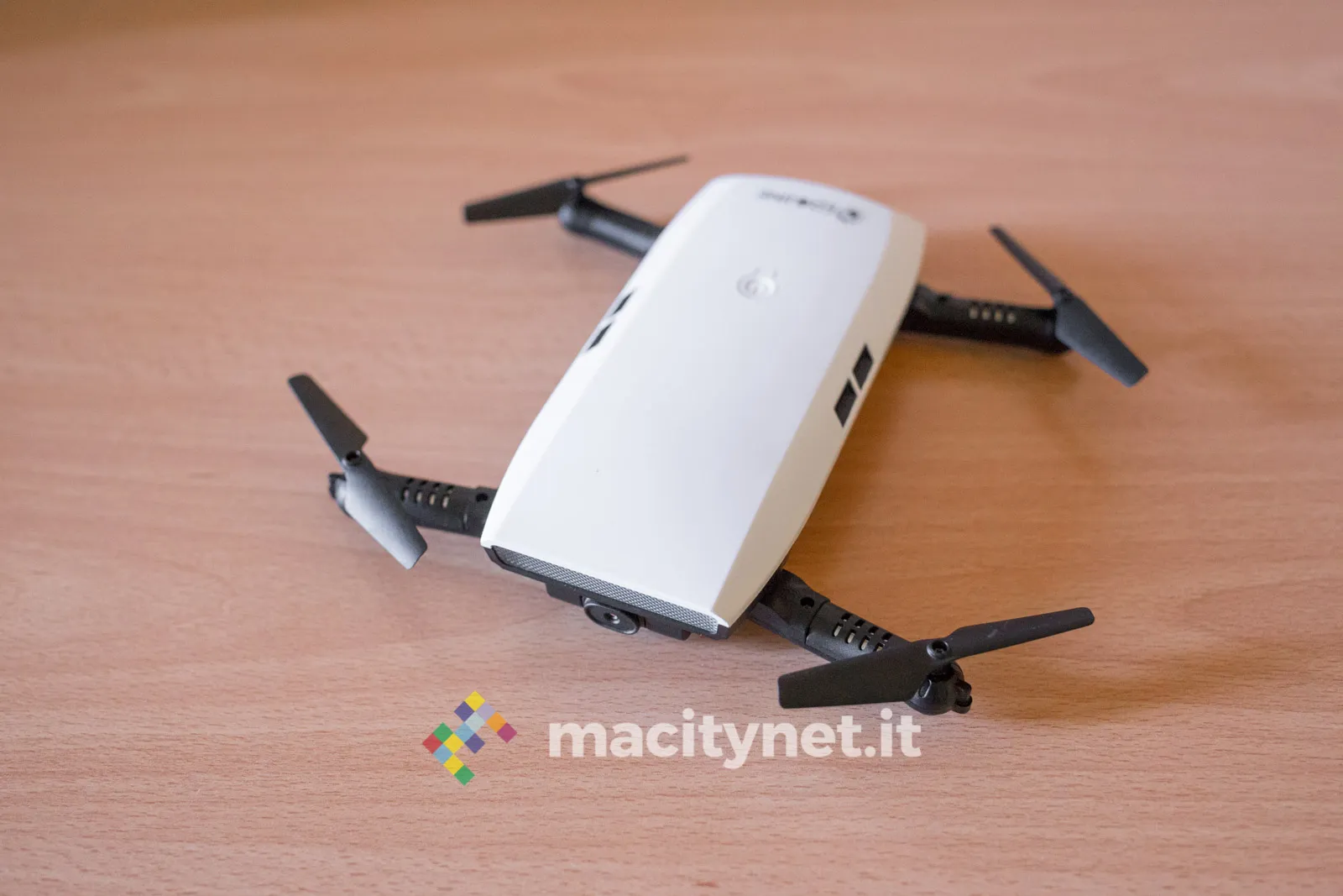 La qualità video della videocamera incorporata non è certamente all’altezza degli smartphone di ultima generazione, ma è più che sufficiente per garantire una buona visibilità dal punto di vista del drone, che avviene in tempo reale direttamente sullo schermo dello smartphone dal quale lo si controlla.