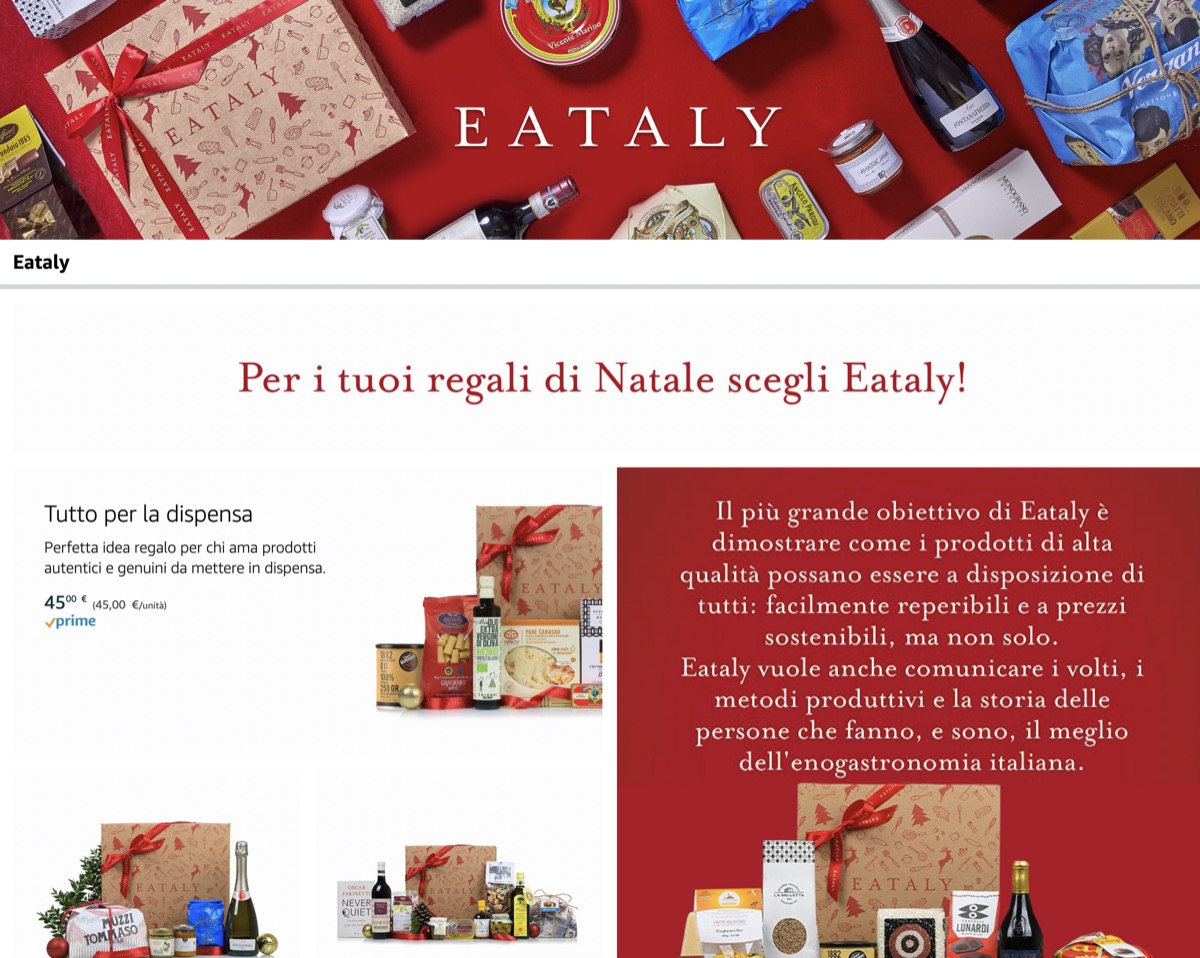 Quest’anno, le ceste di Natale di potranno acquistare anche su Amazon. Eataly, marchio noto nell’ambito della gastronomia di alta qualità, e nel risalente 2015 anche per una cover per iPhone, propone su Amazon alcuni bundle piuttosto sfiziosi. Si parte direttamente da questo indirizzo per acquistare una delle proposte presenti nel catalogo.