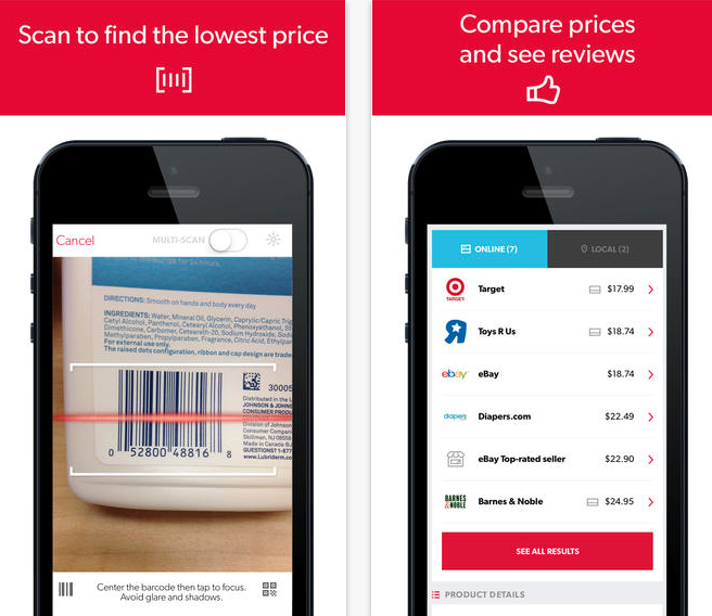 L’app permette di effettuare la scansione del codice a barre stampato sulla confezione del prodotto, e una volta identificato, in tempo reale viene mostrato un elenco di negozi nelle vicinanze o on-line con i relativi prezzi. In questo modo è possibile comparare velocemente le varie offerte e rendersi conto dove l’acquisto è più conveniente.