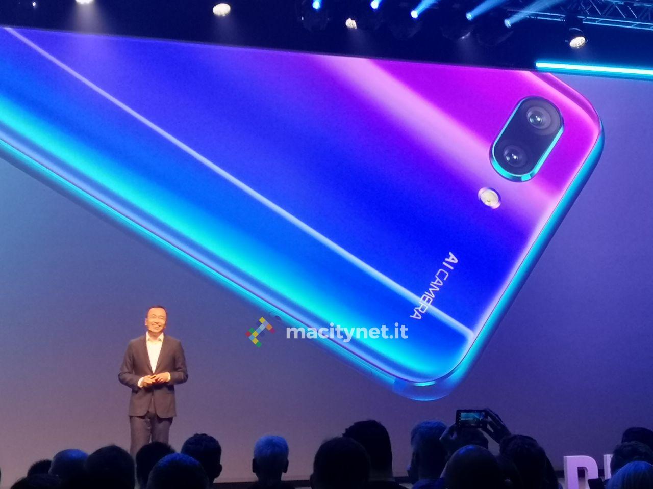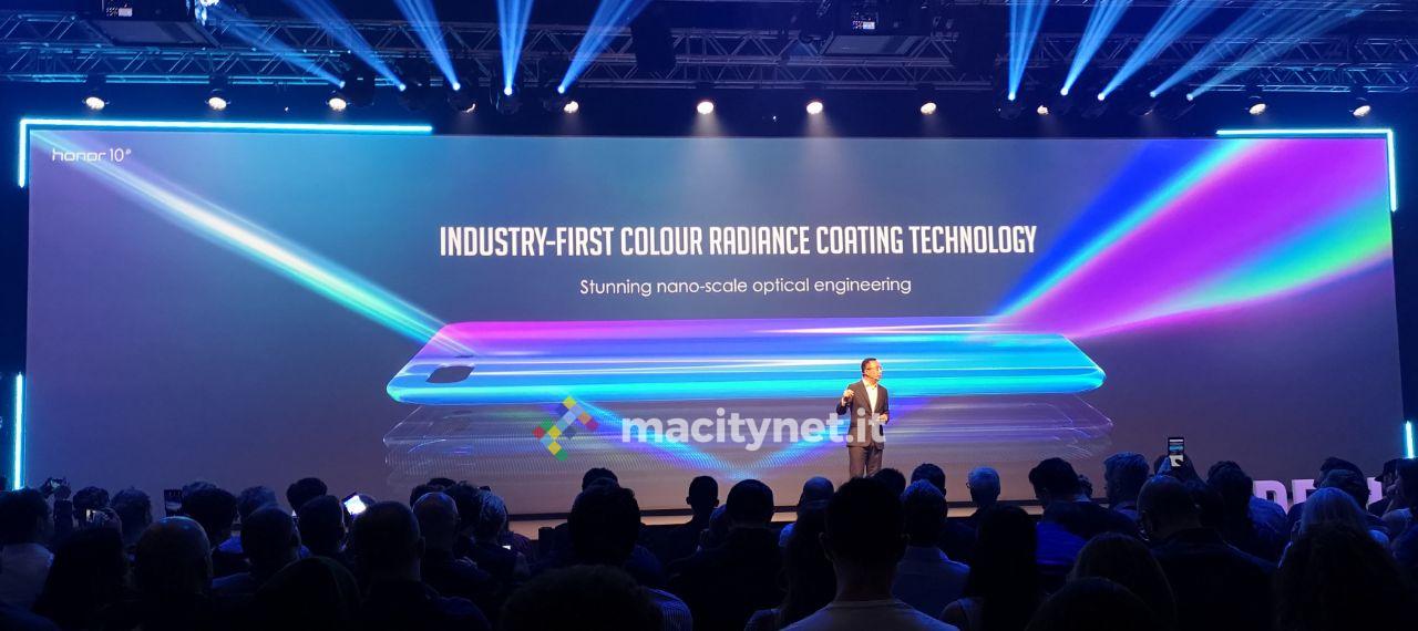 Honor 10 è lo smartphone flagship 2018 del brand che presenta il concept di “Intelligent Beauty” e rivela ai consumatori due tecnologie all’avanguardia nel settore: la prima è la AI 2.0, applicata principalmente alla doppia fotocamera dello smartphone, mentre la seconda è il design CMF, corpo in vetro 3D con uno rivestimento ottico su scala nanometrica composto da 15 strati in vetro dal colore scintillante.