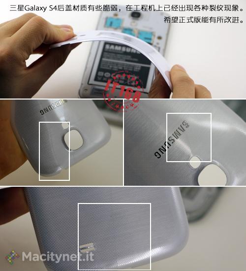 Non sembra poi tanto diverso dal suo predecessore e fa largo uso di materiali plastici il nuovo Samsung Galaxy S4, almeno a giudicare dalla prova esclusiva messa in linea dal sito Mobile.it168.com. Spicca la nuova fotocamera da 13 milioni di pixel e maggiore sensibilità basata su sensore Sony il processore ad 8 Core (in realtà sono 4+4 con una accurata gestione dei consumi), lo schermo da quasi 5″ leggermente più grande di quello del suo predecessore ma sopratutto con risoluzione 1080p che raggiunge quella del più solido HTC one.