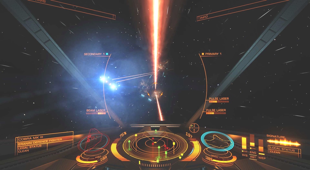 Elite Dangerous è il seguito di Elite, il primo videogioco spaziale che ha concesso libertà assoluta ai giocatori negli anni ’80. Ora in beta per PC, offre grafica top, infiniti sistemi solari e pianeti da raggiungere ma soprattutto ancora la possibilità di scegliere e di giocare come meglio si crede. Come nel leggendario Elite dell’era home computer 8 bit, il giocatore inizia con una astronave modesta e poco attrezzata e 100 crediti in tasca: a partire da questo punto siamo noi a decidere se diventare onesti commercianti spaziali oppure pirati senza scrupoli, se accettare le missioni che ci permetteranno di modificare le sorti della guerra interplanetaria in corso oppure disinteressarci di tutto e diventare spietati cacciatori di taglie.