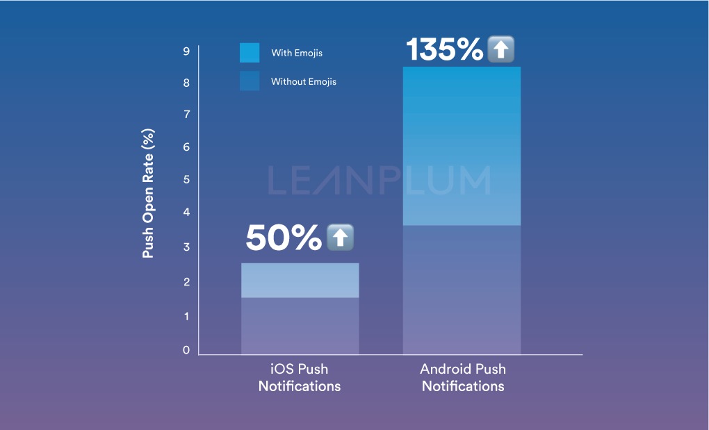 Secondo un recente studio svolto da Leanplum e App Annie la pratica di inserire le emoji all’interno delle notifiche push su iOS e Android aumenterebbe drasticamente il loro tasso di apertura, fino all’85 per cento, soprattutto su Android.
