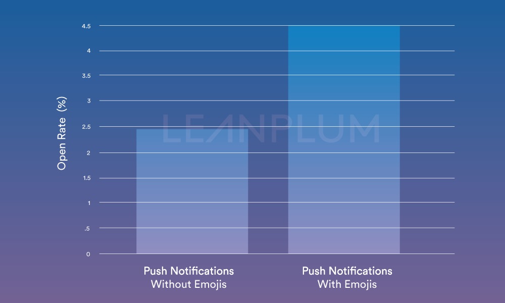 La differenza in modalità “normale” è facilmente intuibile se si considera che notifiche push standard, sulla base di un campione d 5.000 campagne di notifiche push e 2,6 miliardi di messaggi, hanno solitamente un tasso di apertura pari al 2,44 per cento; le notifiche push che contengono invece un’emoji vengono aperte ad tasso molto più alto, pari al 4,51 per cento. Il che aiuta gli editori e gli sviluppatori di app mobili o migliorare il coinvolgimento di utenti e clienti.