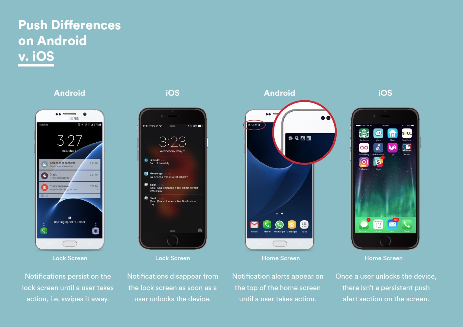 La differenza sarebbe dovuta al sistema operativo: le notifiche push restano più a lungo nelle aree notifiche di Android rispetto ad iOS, e la relazione ipotizza che questo significhi più tempo a disposizione dell’utente per vedere le notifiche e aprirle.