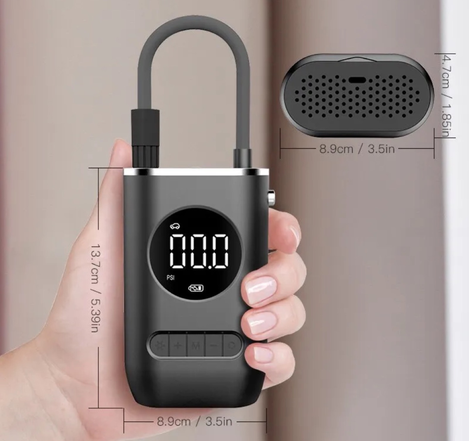 E’ così compatto che potete portarlo anche in spiaggia per gonfiare il canotto, ma soprattutto incorpora uno schermo OLED dal quale potete tenere traccia non solo dell’autonomia, ma anche del livello di pressione raggiunto (in PSI, BAR, KPA oppure Kg/cm2), quindi si può usare anche come semplice tester per controllare la temperatura degli pneumatici prima di partire per un viaggio.