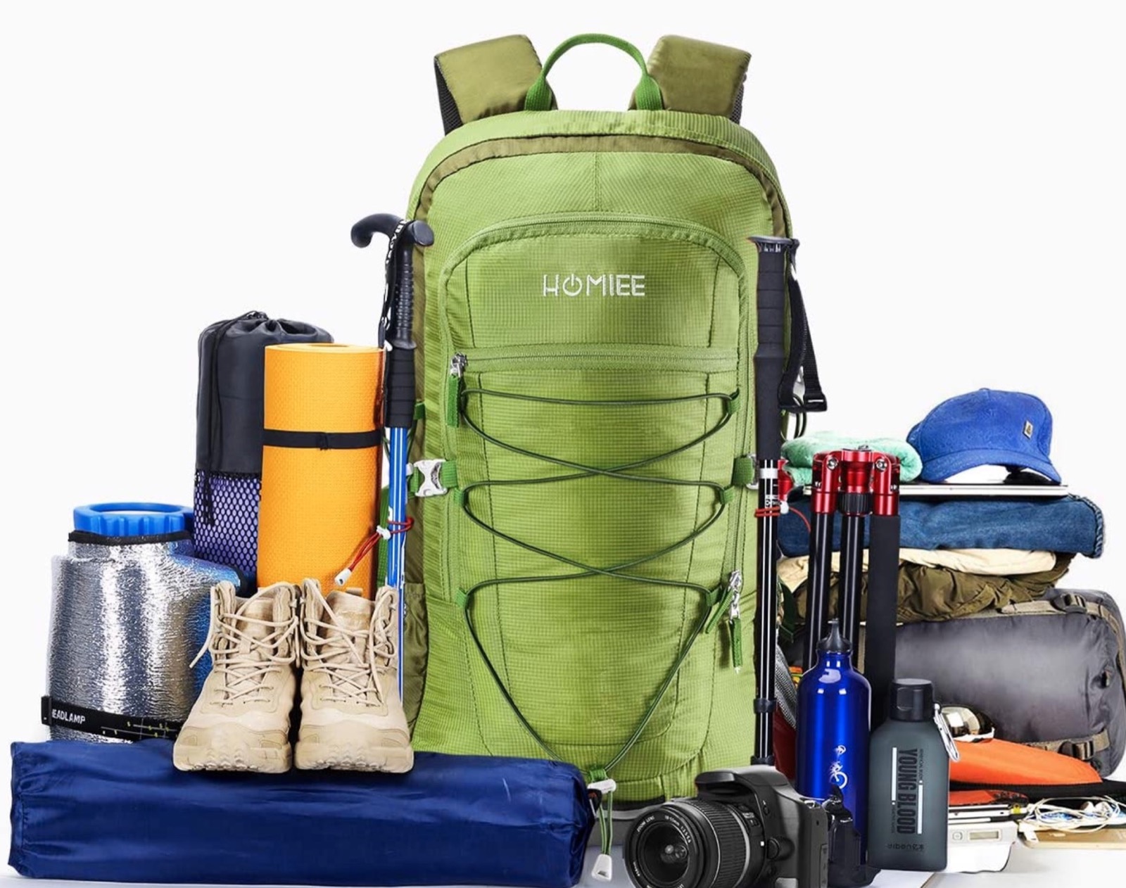 C’è poi uno zaino da trekking da 45 litri, resistente all’acqua, con tante tasche per riporre separatamente tutto l’occorrente e barre riflettenti per restare visibili anche al buio.