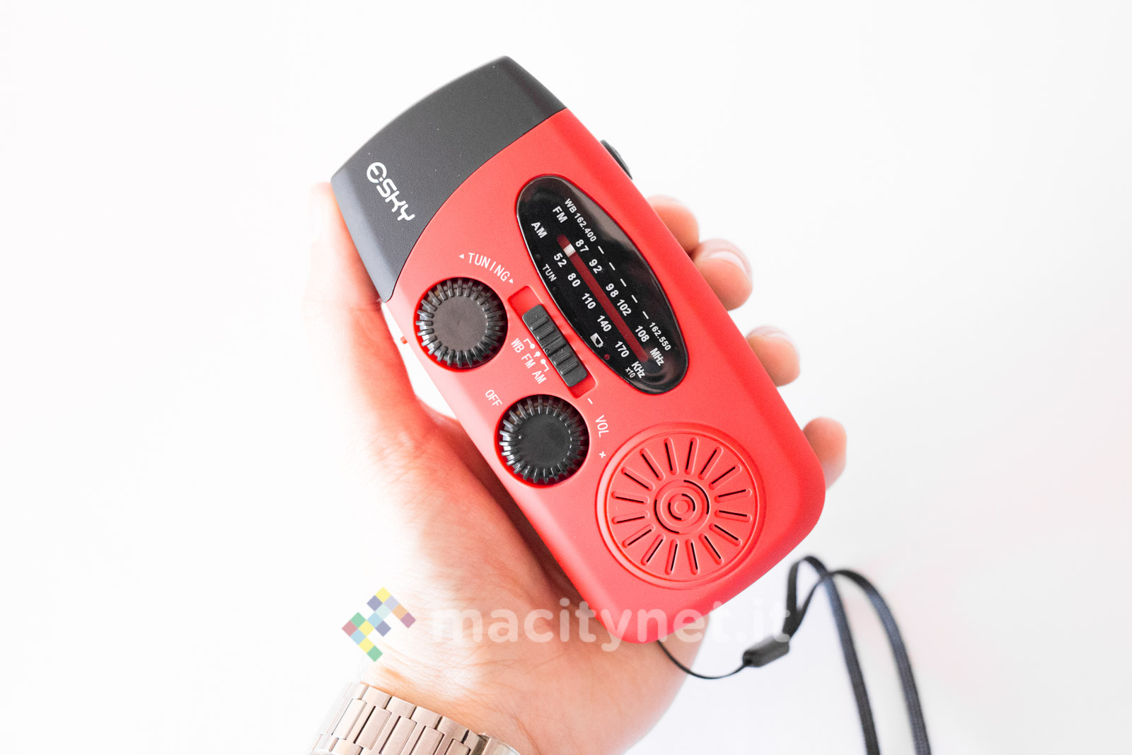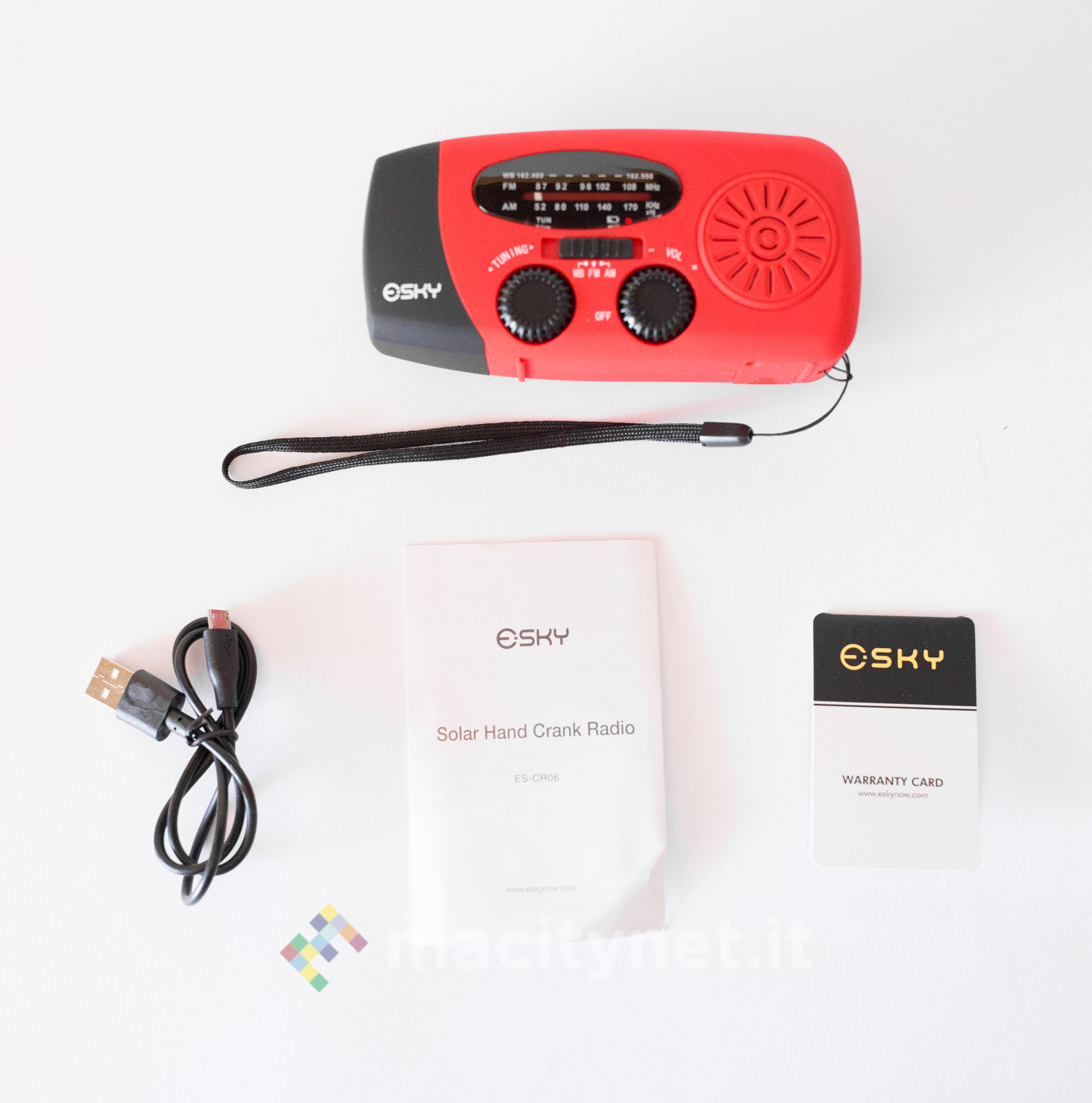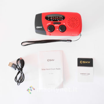 Una radio, una batteria d’emergenza con pannellino solare e con ricarica a manovella anche per lo smartphone e una torcia. E’ Esky ES-CR01, un gadget 3-in–1 che abbiamo provato di recente e che racchiude in un corpo piuttosto compatto queste tre funzionalità, offrendo anche alcuni vantaggi dal punto di vista della ricarica della batteria interna.