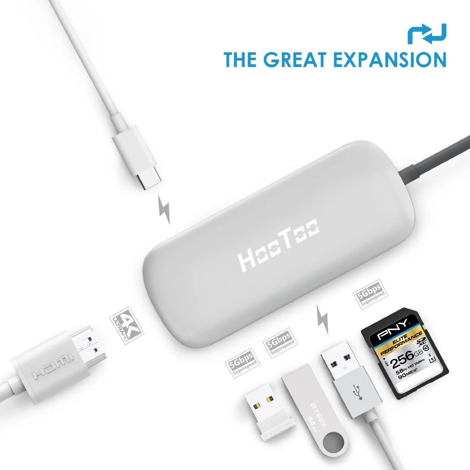 C’è poi uno slot SD per leggere e scrivere sulle schedine di memoria ed una presa HDMI per il collegamento a una TV o un monitor. Per finire, una presa USB-C aggiuntiva permette di collegare il cavo di alimentazione e passare così attraverso l’hub per garantire la ricarica del computer. Ovviamente se volete usare la velocità di Thunderbolt 3 per ulteriori connettori potete usare una delle altre prese.