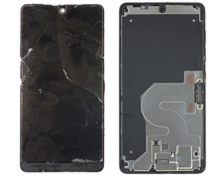 iFixit ha provato a smontare il dispositivo ma l’operazione si è rivelata piuttosto complicata. Il problema principale è stato rimuovere la cover posteriore, tenuta ferma con così tanta colla che tentativi di tutti i tipi (incluse prove ad alta e bassa temperatura) sono stati vani: alla fine è stato necessario rompere il display. All’interno i componenti sembrano disposti in modo “confuso” (parola di iFixit) e senza nessun apparente ordine logico. La porta USB-C è saldata direttamente sulla scheda logica, la fotocamera frontale e l’auricolare sono tutte parti di un unico componente.