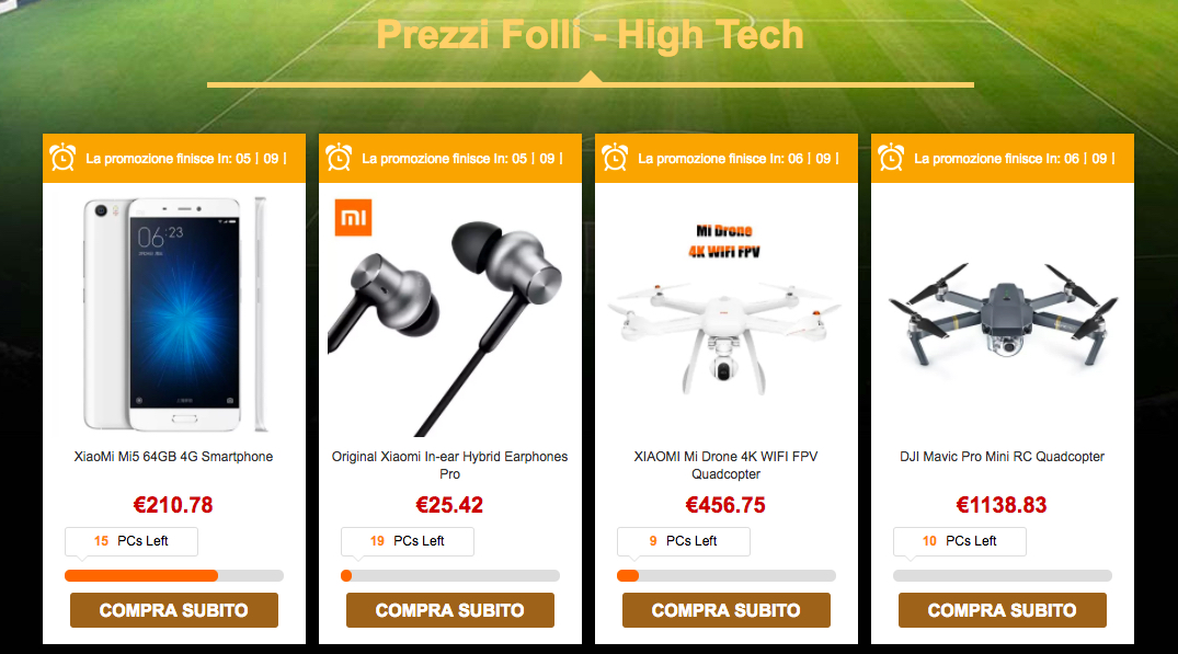 Per Xiaomi non possono mancare gli smartphone in offerta, fra cui lo smartphone Xiaomi Mi5 64GB a soli 210 euro in versione internazionale, oppure le Xiaomi Auricolari Pro in-ear, dal prezzo di soli 25 euro ma dalle performance di alto livello. Chiudono la lista dei prodotti più interessanti lo Xiaomi Mi Drone 4K, in offerta a 456 euro, e lo scooter/monopattino elettrico pieghevole Xiaomi M365, anch’esso in offerta a 436 euro.