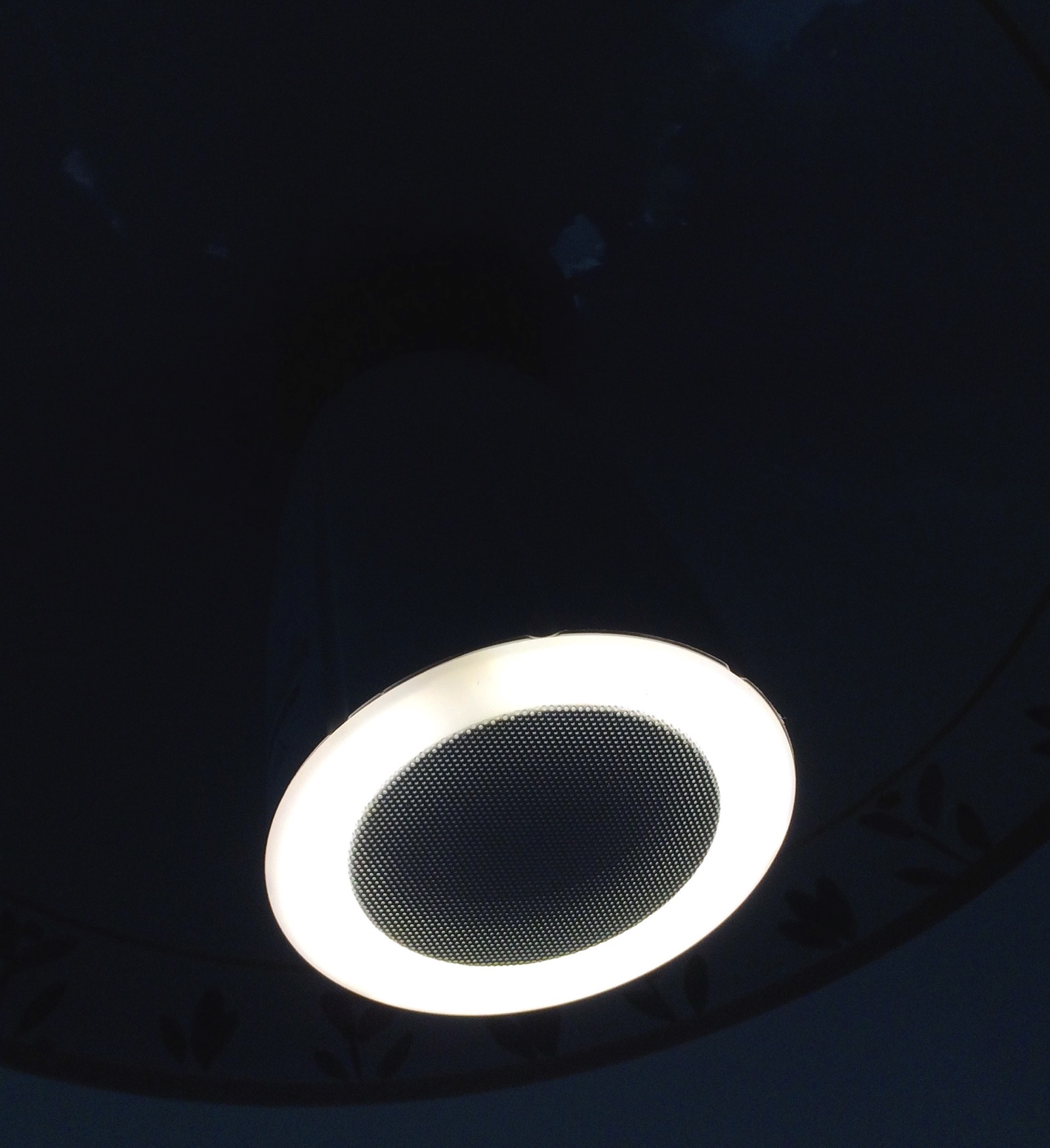 L’intensità e l’effetto illuminante sono fortemente legati alla conformazione ad anello con apertura solo sulla parte bassa che risulta molto direzionale così’ come il suono riprodotto dallo speaker a larga banda. Spostandoci dall’asse della lampada l’area “illuminata” dalla luce e dal suono si riduce limitando l ovviamente e note più acute. Per questo anche se la potenza audio è buona, vediamo il sistema come più adatto a gestire musiche di sottofondo o ambientali piuttosto che come uno strumento per insonorizzare una festicciola in cui si balla. In ogni caso a volumi mediobassi l’equilibrio su tutto lo spettro sonoro è apprezzabile.