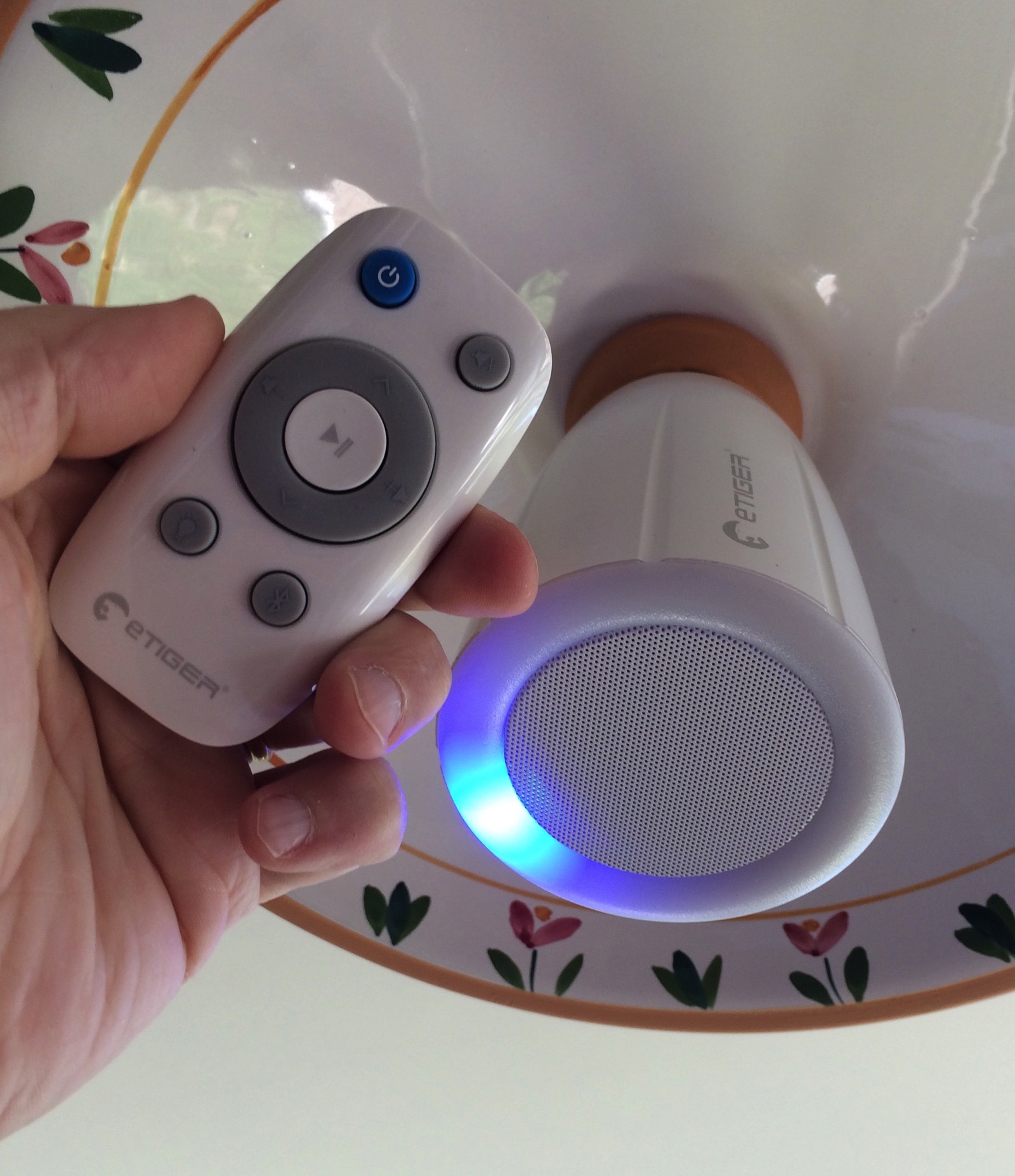 In ogni caso alla prima accensione la lampada si predispone al collegamento Bluetooth e viene mostrata sul vostro computer o smartphone con la sua sigla pronta per l’accoppiamento. Fatto questo lanceremo la nostra applicazione per la riproduzione musicale e da quel momento potremo o cambiare direttamente brani e volume direttamente sul dispositivo sorgente oppure servirci del telecomando che gestirà, come detto, il volume di amplificazione dello speaker, l’avanzamento e il play-pausa delle tracce e pure il livello di illuminazione della lampada da nullo al 50% al 100% con la pressione successiva dello stesso pulsante in gomma. Il tasto mute e quello di risincronizzazione Bluetooth completano la disponibilità a bordo del telecomando.