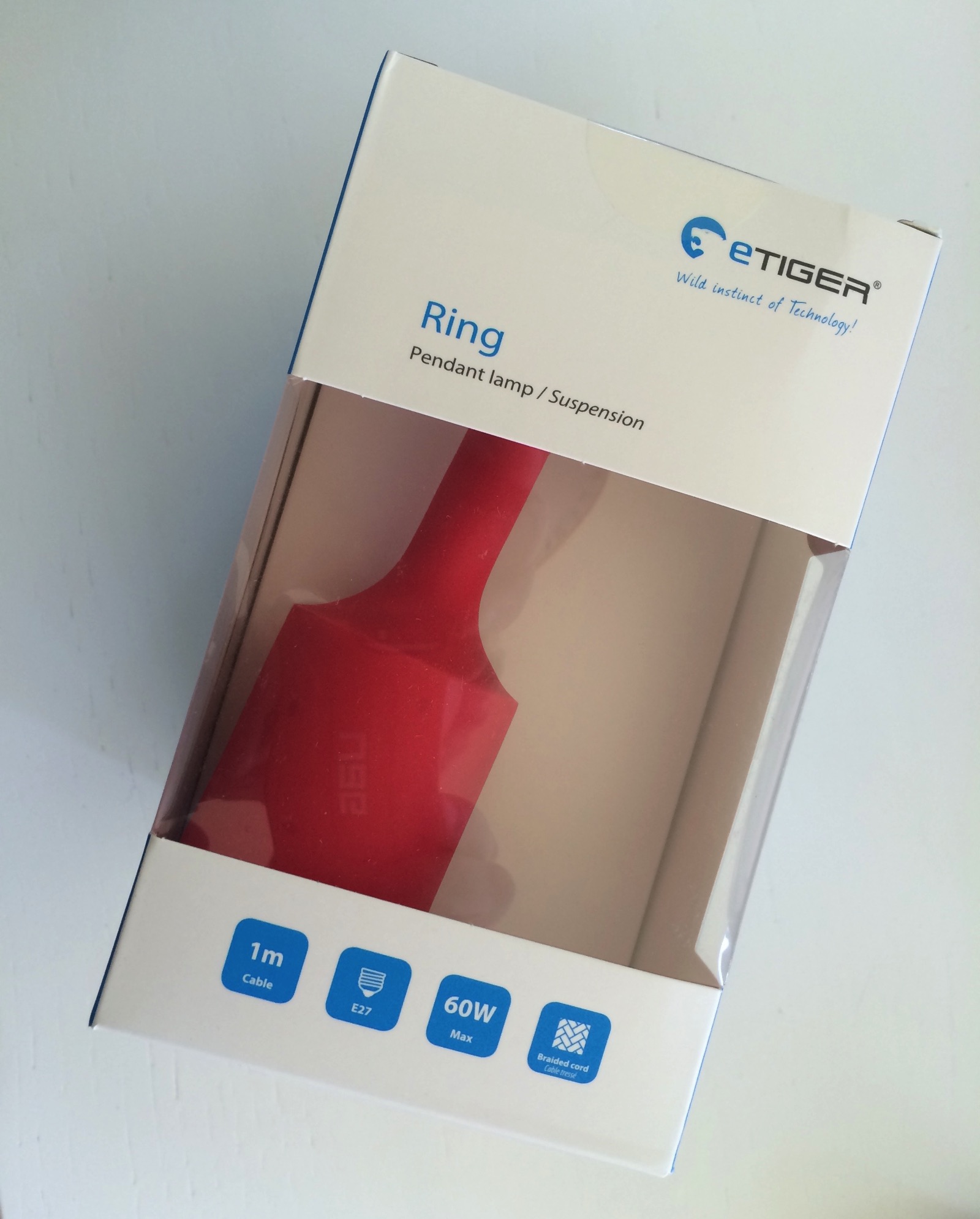 Insieme alla lampada per il test abbiamo ricevuto un simpaticissimo portalampada Ring di colore rosso con coppa in plastica e filo cordonato che fa da ottimo complemento alla lampada. Si tratta di un sistema economico ma molto moderno per installare la lampada con un esiguo costo complessivo. La qualità del portalampada ci sembra buona e il colore rosso ben calibrato per un’installazione spiritosa e moderna. Il portalampada gestisce una potenza massima di 60 Watt.