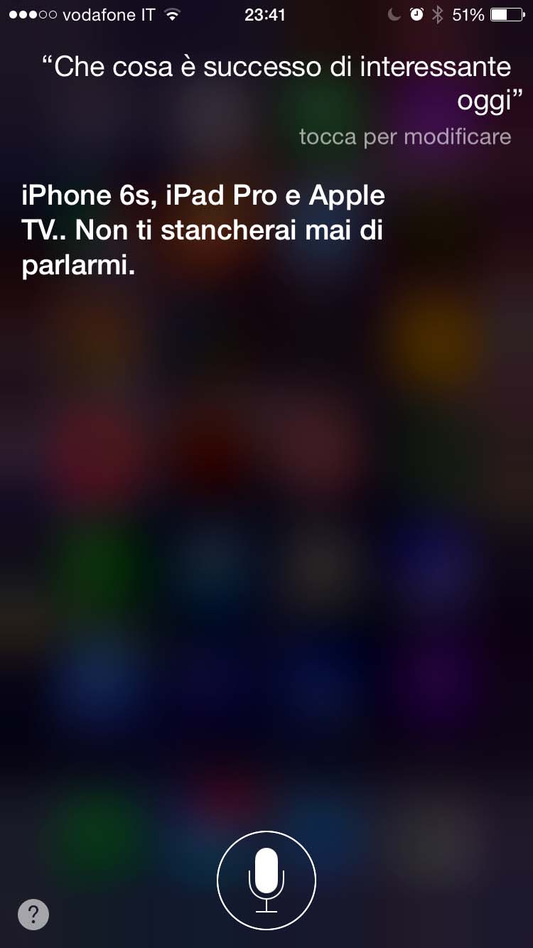 Ricordiamo che fin dall’inizio Apple aveva coinvolto Siri nell’evento del 9 settembre, richiamando Siri nello slogan di presentazione (Siri dacci un indizio). Gli ingegneri della Mela avevano poi aggiornato i sistemi per renderli in grado di lanciarsi in qualche battuta, proprio alla domanda “Siri dacci un indizio”