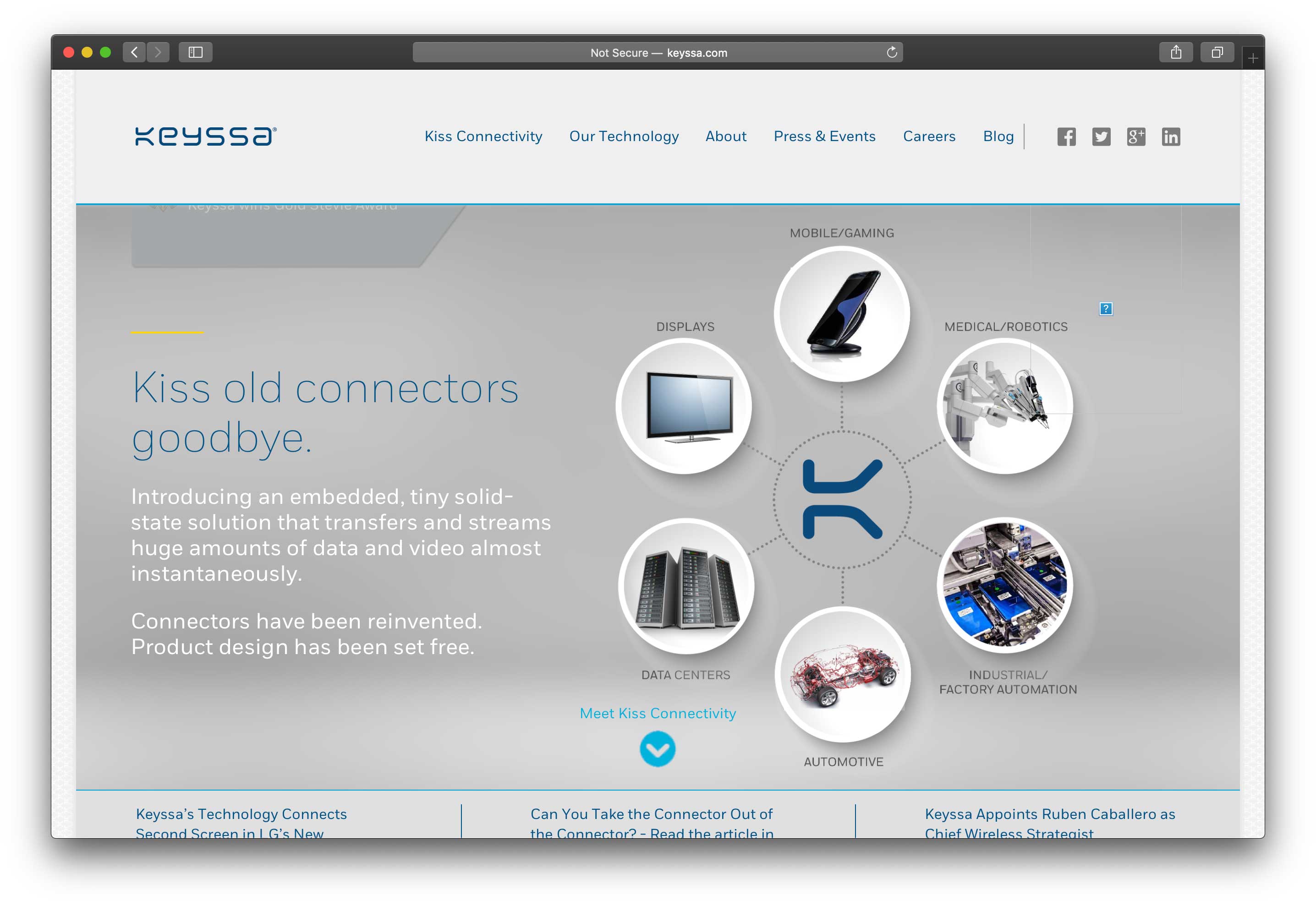 L’ex dirigente della Mela ora lavora come “chief wireless strategist” per Keyssa, la startup della Silicon Valley che mira a eliminare qualsiasi cavo dagli smartphone. Keyssa vuole consentire ai produttori di dire addio ai cavi con un chip che è in grado di trasferire dati con velocità quasi uguali a quelle che è possibile ottenere con i fili, mettendo i dispositivi uno accanto all’altro. Tra i primi clienti dell’azienda c’è LG Electronics che usa il chip per collegare il secondo schermo dello smartphone con doppio schermo pieghevole LG V50.