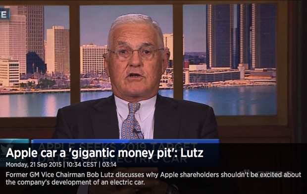 Le auto elettriche sono una gigantesca perdita di soldi e nemmeno Apple riuscirà a fare meglio degli altri costruttori di auto. È questo in estrema sintesi quanto dichiara Bob Lutz, ex manager General Motors che non ha risparmiato critiche e anche alcune frecciate indirizzate a Cupertino, durante una intervista trasmessa su CNBC in USA, riportata da BGR. Come ogni novità, anche solamente anticipata, che ha a che fare con la Mela, la domanda su Apple Car è di rito e prevedibile per un dirigente che ha lavorato per anni nel settore automobilistico. La risposta o meglio le risposte di Lutz non si sono fatte attendere: nessuna compagnia al mondo ha ricavato un centesimo dalle auto elettriche, mentre iPhone è un prodotto di successo e con margini elevati. Dal punto di vista dell’anziano dirigente non ci sono ragioni per cui Cupertino dovrebbe anche solo pensare di investire nelle auto.