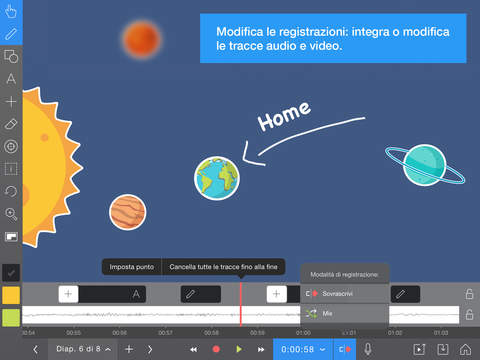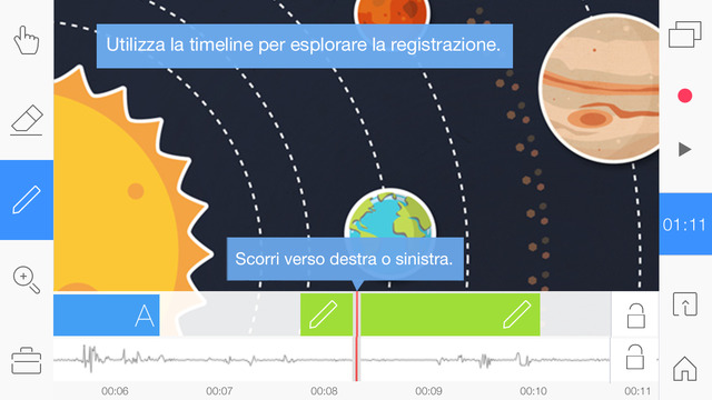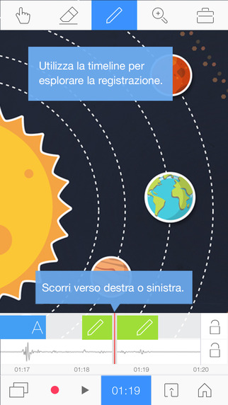 La forza di Explain Everything sta nella semplicità di utilizzo e nel suo essere versatile, oltre che compatibile con le più diffuse app per il lavoro. La semplicità è evidente: un’interfaccia immediata, con grafica essenziale e una più semplice ancora barra degli strumenti (l’utente può scegliere quella che preferisce): i comandi facili da imparare ne fanno un’app adatta proprio a tutti: dall’insegnante di matematica a quella di greco, dallo studente più smanettone a quello che se potesse l’iPad lo scambierebbe con i vecchi blocchi a quadretti.