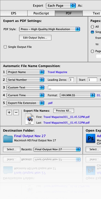 Per chi non conosce il prodotto, ricordiamo che il plug-in/Extension permette di esportare singoli documenti in file separati. Chi utilizza stampanti high-end e le aziende che si occupano di prepress possono generare output in formati standard quali: EPS, PostScript e PDF. Exportools può estrarre testi, esportare singole pagine, immagini e selezioni.