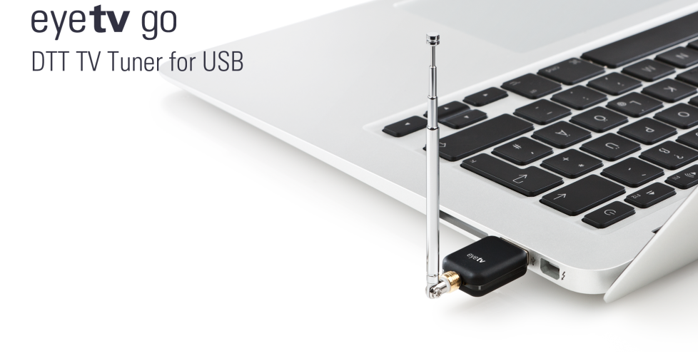 EyeTV Go è un nuovo sintonizzatore TV per Mac. Leggero (solo 3 grammi) e di piccolissime dimensioni (35 x 16 x 8 mm), si connette alla porta USB permettendo di vedere la televisione digitale terrestre (DVB-T, conosciuto anche come DTT o Freeview) direttamente sul computer, senza bisogno di collegamenti a internet.