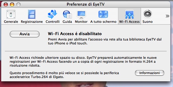 EyeTV 2.5 offre inoltre una semplice opzione di esportazione verso i dispostivi touch di Apple con un semplice click di mouse sarà possibile creare facili tasferimenti per gli spettacoli TV per la riproduzione offline dalla memoria di iPhone e iPod Touch.