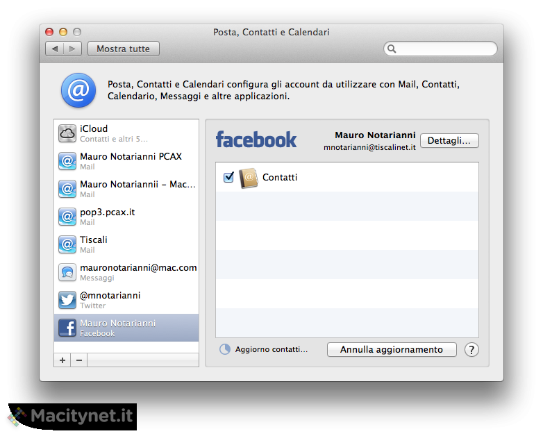Tra le novità integrate nel recente aggiornamento che porta OS X Mountain Lion alla versione 10.8.2 la completa integrazione con Facebook. L’integrazione con Twitter era una caratteristica già presente in precedenza: in questo articolo vedremo come configurare qualunque account (tra quelli supportati da Apple) e sfruttarli nel nuovo sistema. Come abbiamo già scritto altre volte, integrazione con i social network a livello di sistema significa fare il login una volta sola e condividere vari elementi direttamente all’interno delle varie app. Ecco come procedere: