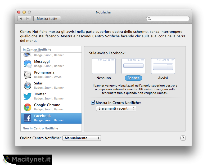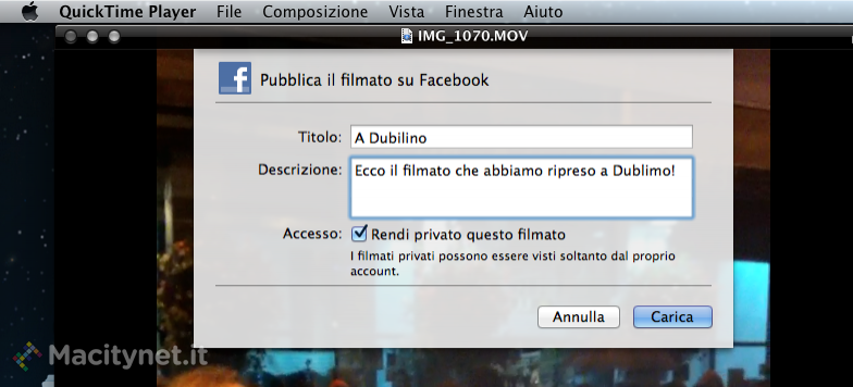 Selezionando in Preferenze di Sistema la voce “Notifiche” sarà possibile selezionare quali servizi mostrare in alto a destra nel Finder, quanti elementi mostrare e lo stile da utilizzare per gli avvisi (dopo aver fatto il login in Facebook, vedremo arrivare gli avvisi direttamente in Centro notifiche). Selezionando “Facebook” dal menu Condivisione (appare, quando, ad esempio apriamo un video con QuickTime o un’immagine con Anteprima), viene mostrata la scheda Condivisione per Facebook: è un form nel quale è possibile indicare i contenuti che vogliamo pubblicare, dove aggiungere commenti, specificare eventualmente la posizione. la visibilità (amici o altro). Postando una foto sarà anche possibile aggiungerla agli album esistenti.