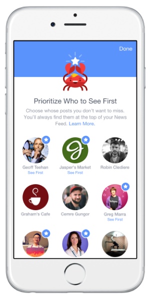 Per la prima volta gli utenti Facebook su iOS possono scegliere i contatti e le pagine i cui post verranno mostrati sempre in alto, di fatto il primo vero sistema per personalizzare il flusso delle notizie fino a oggi creato in automatico dagli algoritmi di Faceook. Si tratta di un aggiornamento importante, non a caso le novità in arrivo sono anticipate direttamente dalla più grande piattaforma social del mondo con un post pubblicato sul blog ufficiale Facebook.