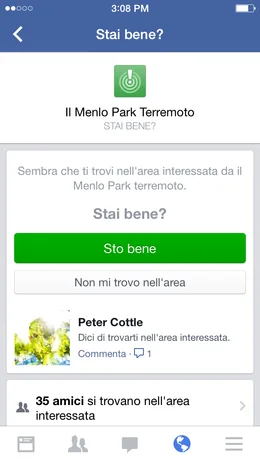 Facebook ha presentato Facebook Stai Bene, nuovo strumento che l’azienda mette a disposizione di tutti gli utenti per segnalare il loro stato e messa in sicurezza durante situazioni di crisi e difficoltà. Lo strumento fa riferimento alla possibilità di trovarsi travolti da tragedie o calamità naturali, come terremoti, tsunami, maltempo, situazioni in cui la vita e la sicurezza della persone potrebbe essere a rischio. Facebook Stai Bene nasce appunto con lo scopo di poter avvertire rapidamente i propri amici e familiari di essere al sicuro. Il sistema rileverà la posizione degli utenti che potrebbero coinvolti nell’evento, come un’area colpita da un terremoto per esempio, ed invierà all’utente una notifica su Facebook invitandolo a comunicare il suo stato in sicurezza.