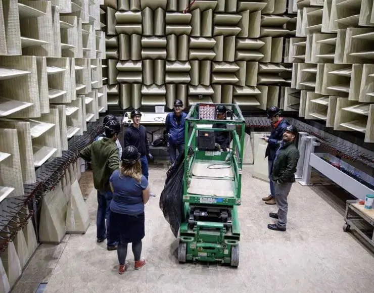 Facebook sta costruendo una camera anecoica, un ambiente strutturato che consente di ridurre il più possibile la riflessione di segnali sulle pareti. Questi ambienti sono normalmente utilizzati in studi nei quali è necessario ricreare, in un ambiente chiuso, condizioni simulate di spazio aperto di dimensione infinita, come conseguenza dell’assenza di riflessioni, per effettuare ad esempio misure di precisione in vari ipotetici ambiti.