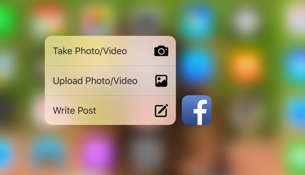 Anche l’app Facebook su iPhone 6s è ora pronta per sfruttare la tecnologia 3D Touch presente sugli smartphone di ultima generazione di Apple. Si tratta dell’aggiornamento numero 41: gli utenti che usano l’app Facebook su iPhone 6s possono premere e tenere premuta l’icona del programma nella schermata principale di iPhone per attivare il menu rapido che permette di azionare al volo tre funzioni rapidi, una scorciatoia simile quindi a quelle già fornite dalle app di serie della Mela e anche dalle prime app di terze parti già aggiornate per 3D Touch.