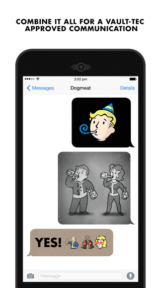 Così potremo arricchire le nostre chat con il volto sorridente del Vault Boy mentre alza il pollice in segno di approvazione, mentre crea bolle con un chewingum, con due cuoricini al posto degli occhi, oppure trasmettere disapprovazione e preoccupazione con la emoji di un fungo atomico in miniatura, il piano di un incontro con l’icona di due Nuka Cola o di due birre, due bibite che si trovano spesso esplorando gli immensi scenari di Fallout. Non mancano anche le GIF animate che mostrano i sopravvissuti dei rifugi antiatomici impegnati nelle loro attività quotidiane, come per esempio cibarsi di carne umana, potenziare forza e resistenza con misteriosi preparati chimici, sparatorie per sopravvivere, hackerare computer e molte altre ancora.