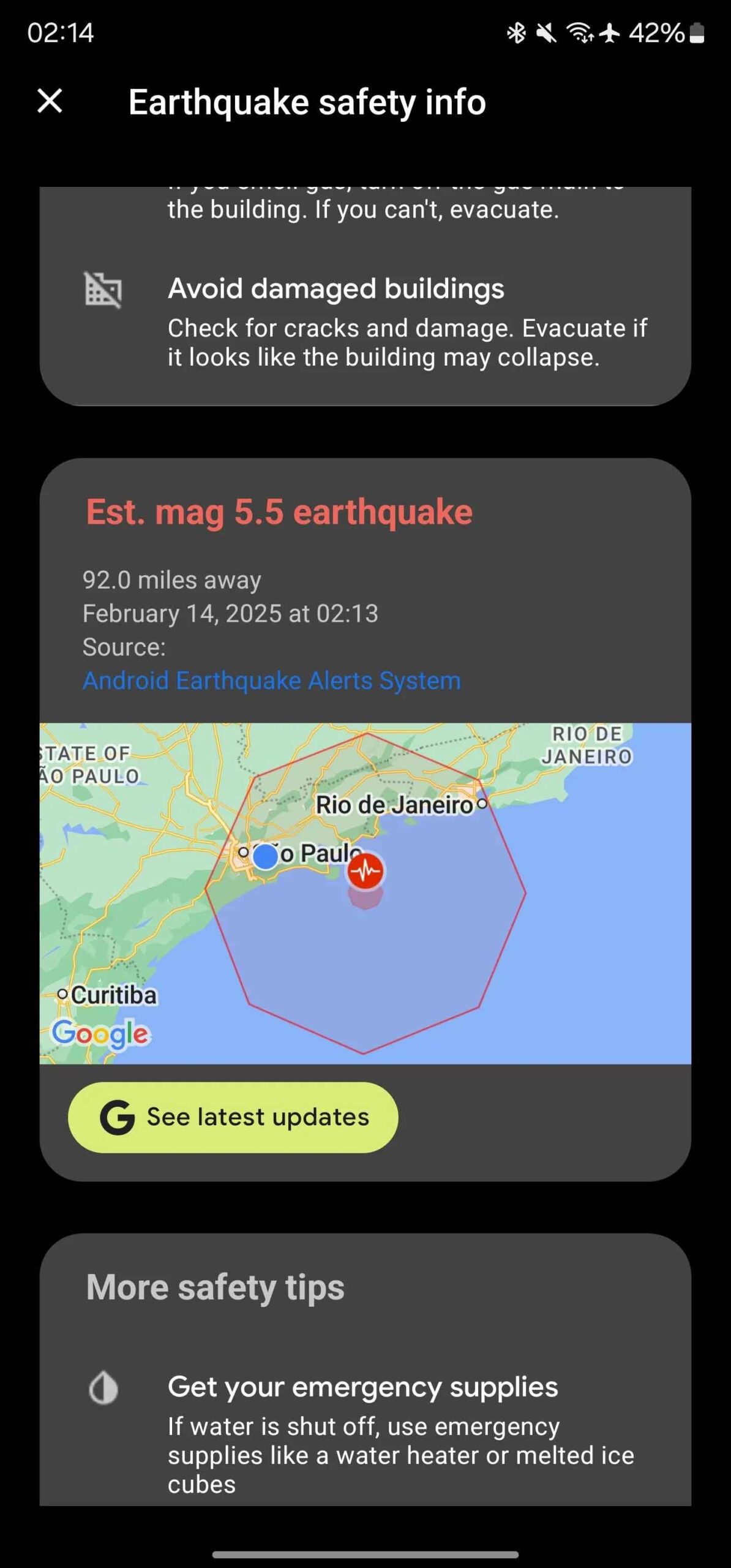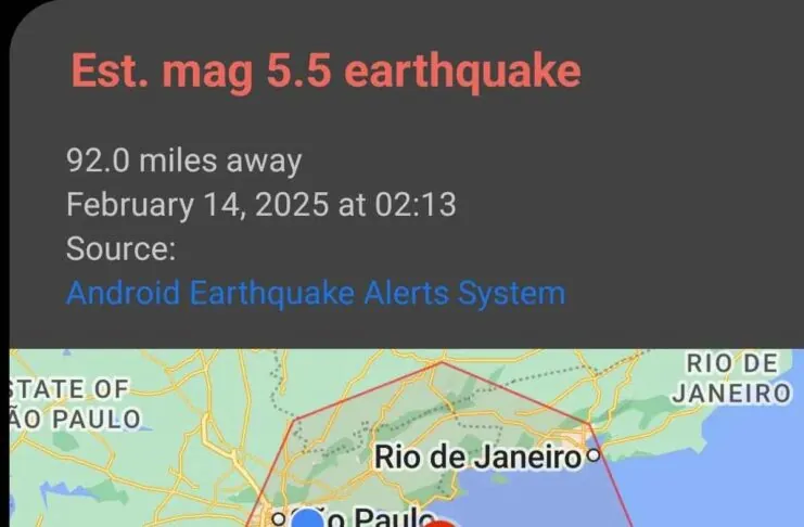 Lo riferisce il sito Android Police evidenziando la comparsa di un alert per un inesistente terremoto di magnitudo 5.5 mostrato da dispositivi Android intorno alle 2 di notte, indicato come identificato nelle zone di Ubatuba e della regione metropolitana di Baixada Santista.