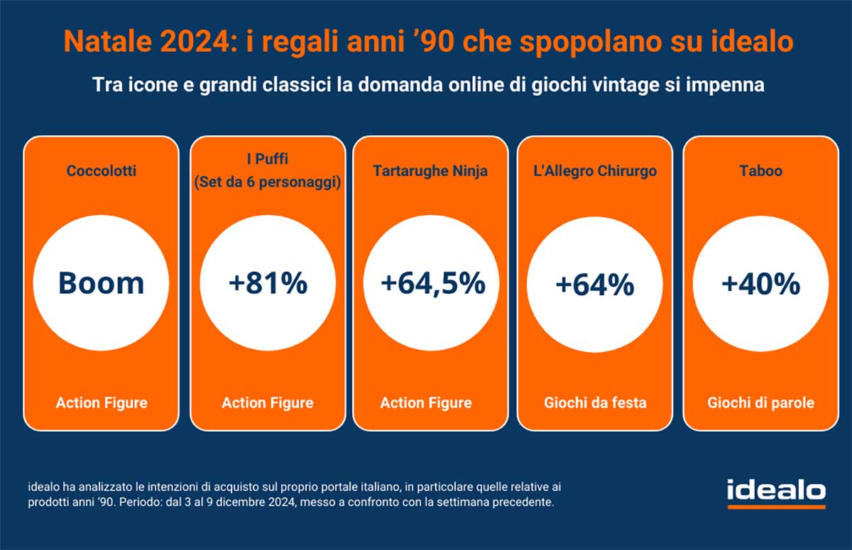 Lo conferma anche idealo – portale per la comparazione prezzi – dove in questi giorni si evidenzia un ritorno al passato: i giochi da tavolo, i personaggi iconici e le console vedono un aumento nelle ricerche proprio nei giorni che si avvicinano al Natale.