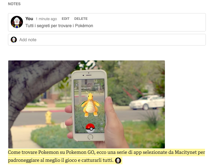 La prima novità è la possibilità di evidenziare delle parti di testo all’interno degli articoli, per sottolineare porzioni di testo particolarmente importanti. Basterà selezionare il testo desiderato e selezionare “highlights” dal menù contestuale”.