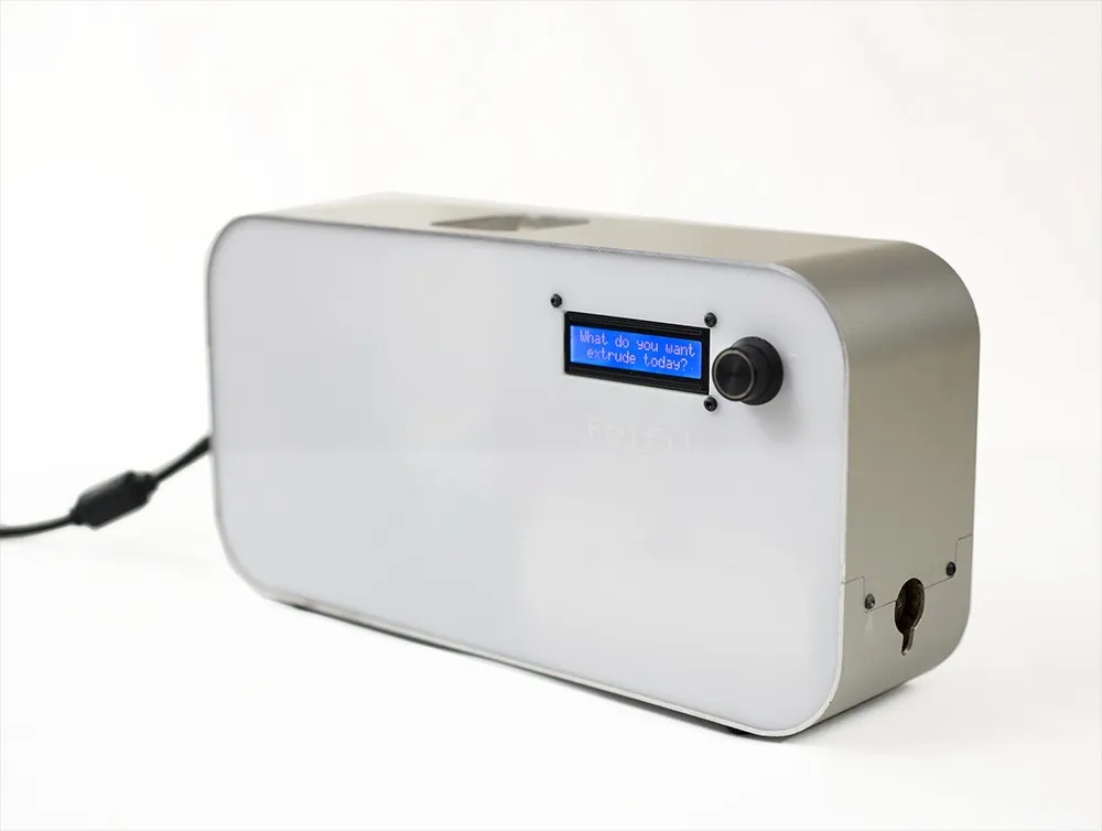 Felfil Evo è un estrusore di filamento plastico domestico, in grado di creare il filamento per la propria stampante 3D a partire da rifiuti plastici, stampe 3D sbagliate e granulato industriale.