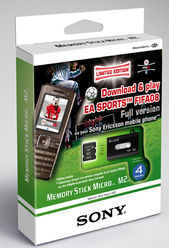 Una edizione limitata delle nuove schede di memoria Memory Stick Micro di Sony offre a tutti gli acquirenti di una nuova scheda da 2 GB oppure 4 GB la versione completa e gratuita del gioco FIFA 2008 di Electronic Arts per il proprio cellulare Sony Ericsson. Il codice promozionale che dà diritto al download del gioco è incluso nelle confezioni di Memory Stick Micro FIFA 08 con la dicitura Edizione Limitata.