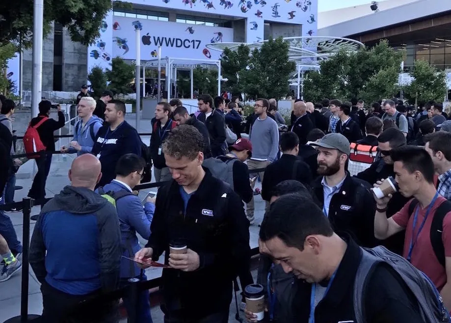 Marco Carnevali ci invia le immagini dell’attesa per WWDC17: migliaia di visitatori in fila nella nuova sede della conferenza mondiale degli sviluppatori Apple a San Jose. Dalle 6 di mattina tutti in linea per compiere il lungo slalom in mezzo ai corridoi della grande struttura per arrivare finalmente alla sala del Keynote.