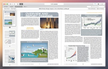 Un pulsante standard di condivisione (in alto a destra) permette di convivere gli elementi selezionati via Mail, AirDrop o Messaggi (nel caso dei documenti) o FaceBook, Flickr, Foto (nel caso di fotografie).