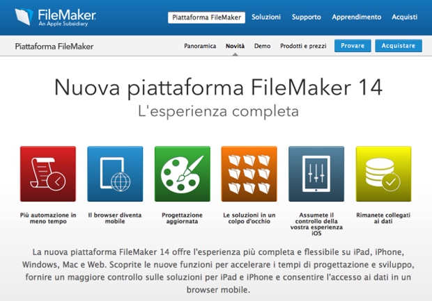 Filemaker è disponibile i versione Pro e Pro Advanced con prezzi da 425,78 IVA inclusa. Costi ridotti per l’aggiornamento.
