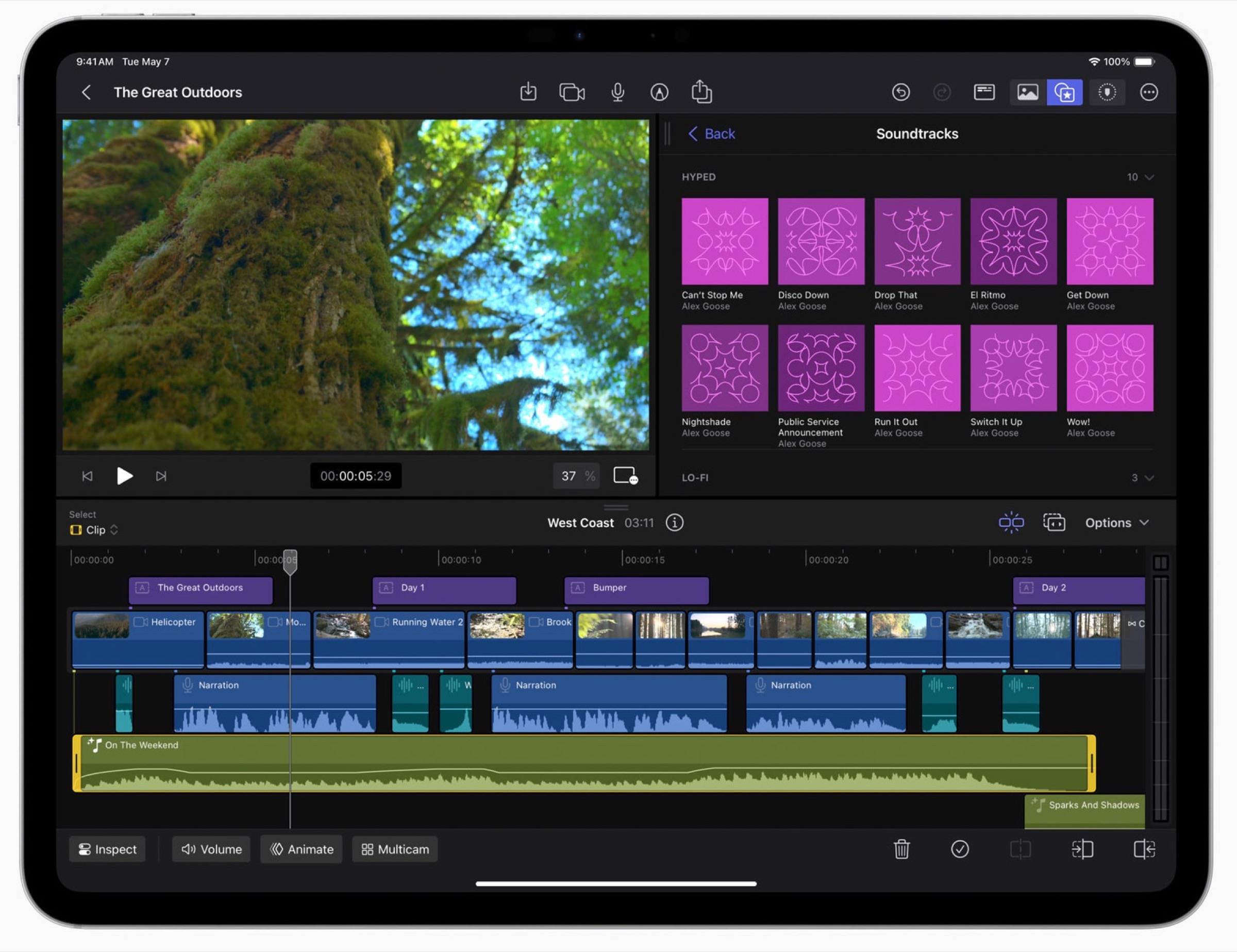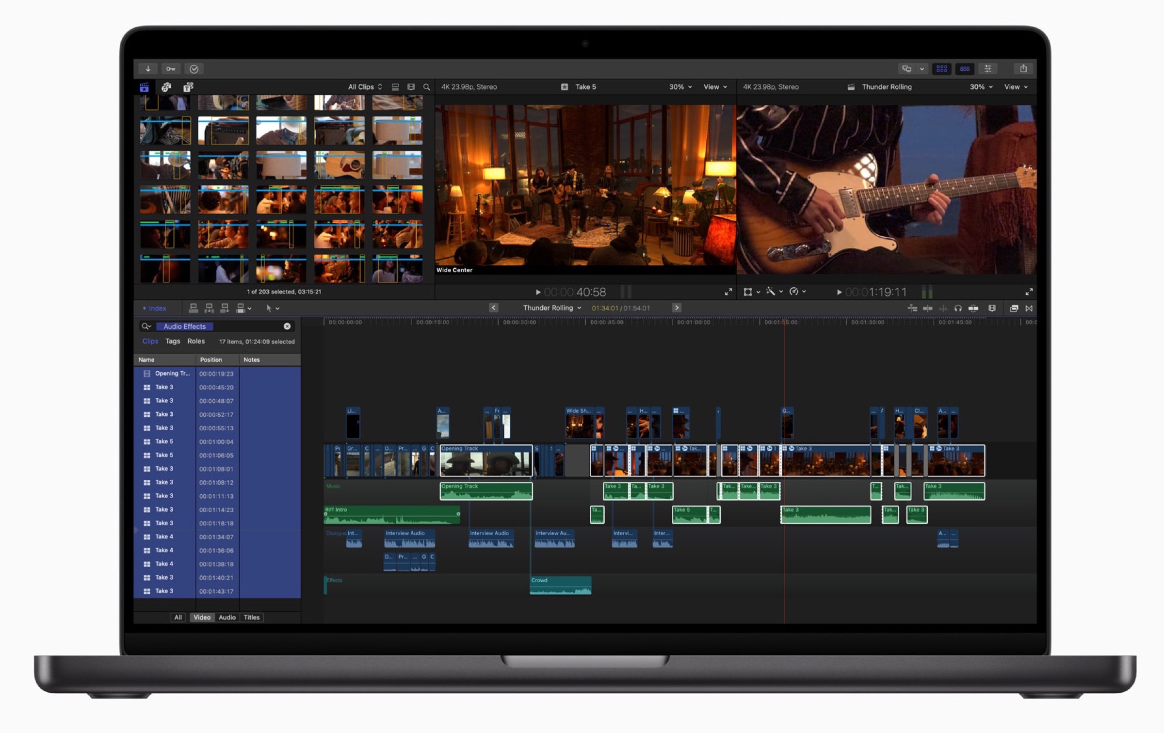 Non solo: le anteprime delle clip da montare vengono trasferite immediatamente in Final Cut Pro per iPad e sostituite in background con il file a piena risoluzione: in questo modo si può passare facilmente dalla produzione all’editing.
