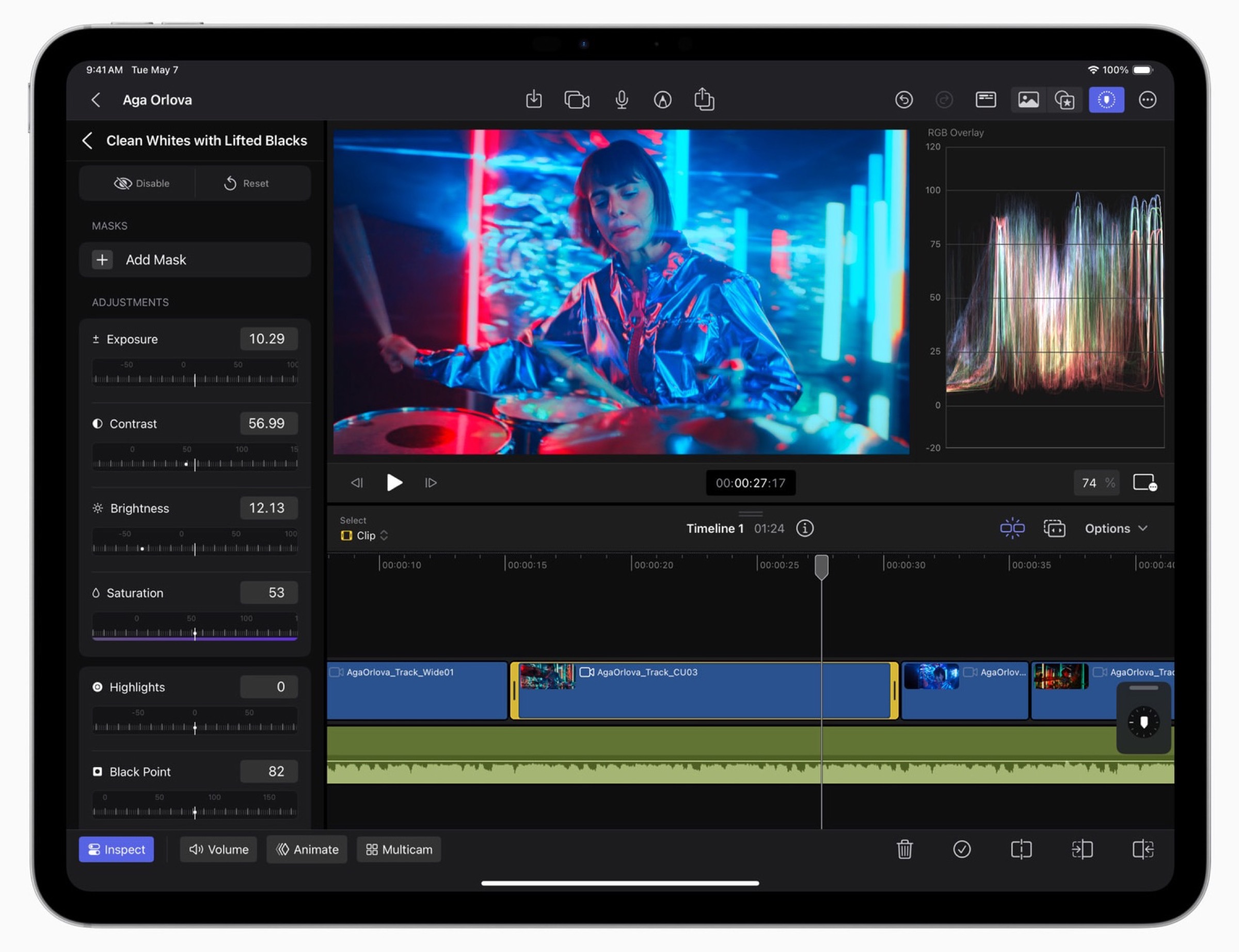 Il cambiamento più grande si chiama Live Multicam, una nuova funzione di Final Cut Pro che permette di trasferire in tempo reale le riprese provenienti da un massimo di quattro dispositivi contemporaneamente. Diventa così lo strumento perfetto per i registi, che da iPad possono così analizzare le anteprime video della stessa scena ripresa da quattro angolazioni diverse.