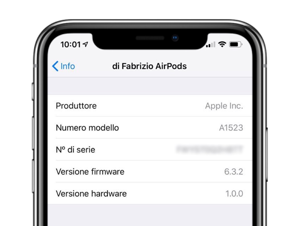 Per controllare la versione attualmente installata sui propri AirPods è sufficiente aprire l’app Impostazioni su iPhone, quindi recarsi nella scheda Generali > Informazioni, quindi selezionare AirPods per conoscere il numero della versione firmware presente.