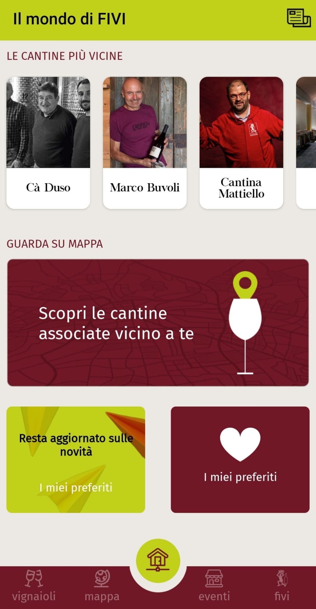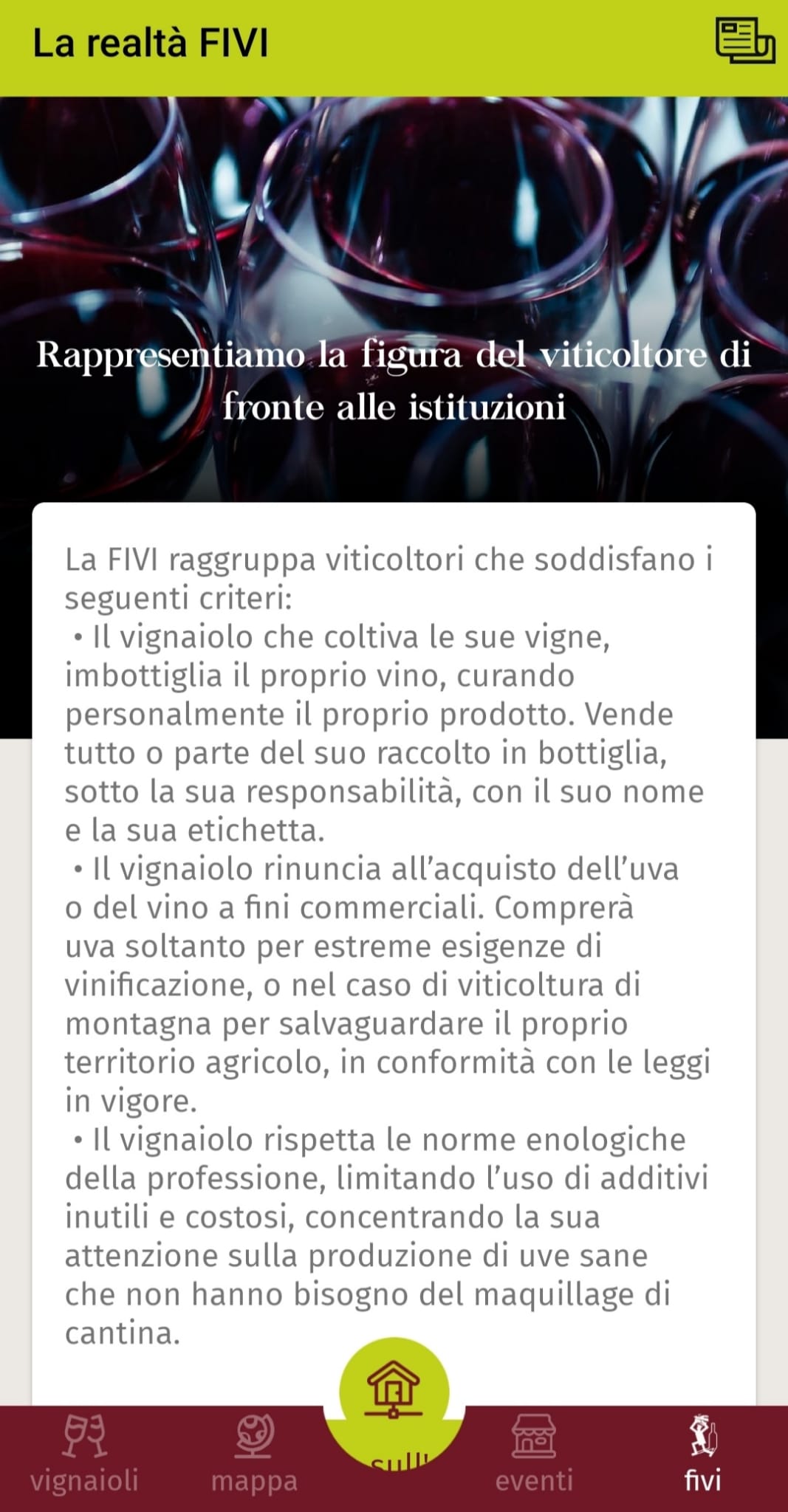 Si chiama FIVI l’applicazione ufficiale per iPhone e Android della Federazione Italiana Vignaioli Indipendenti, la prima tra le associazioni di vignaioli in Europa a utilizzare questo strumento di comunicazione e condivisione. L’app apre un canale diretto su questo mondo, dando la possibilità di accedere facilmente al sito e di restare aggiornati sulle news dell’associazione: l’app facilita inoltre l’incontro sul territorio con i Vignaioli.
