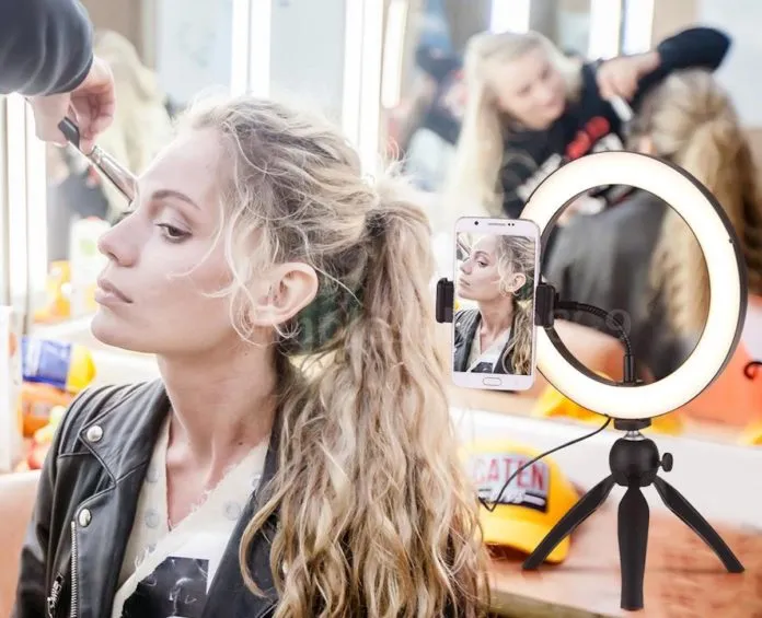 Il più particolare degli accessori in offerta è sicuramente il treppiede a forma di anello, all’interno del quale adagiare il proprio smartphone. Il LED è dimmerabile, con una temperatura di colore di 3000K, 4500K, e6000K, così da poter offrire una luce bianca, bianca calda, o gialla. Ogni modalità di illuminazione ha circa 11 luminosità regolabili tra cui scegliere, con un CRI di 85. Supporta smartphone con larghezza di circa 55-85 mm, adatto anche iPhone X e modelli successivi, compresi gli iPhone Plus.