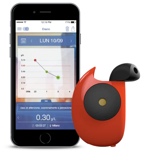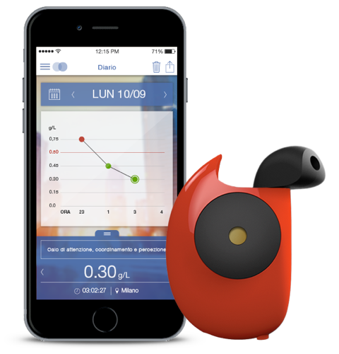 Non ha bisogno di batterie, né di essere ricaricato, quindi funziona praticamente sempre ed in qualsiasi momento. Attraverso un’app è possibile impostare i parametri di peso, altezza, età, sesso per ottenere risultati personalizzati e la stima del tempo necessario al fisico per smaltire l’eccesso di alcol, oltre a contattare con rapidità il servizio Taxi più vicino o conveniente, trovare un locale nelle vicinanze dove mangiare qualcosa oppure accedere ad una rubrica di amici fidati per farsi dare un passaggio a casa.
